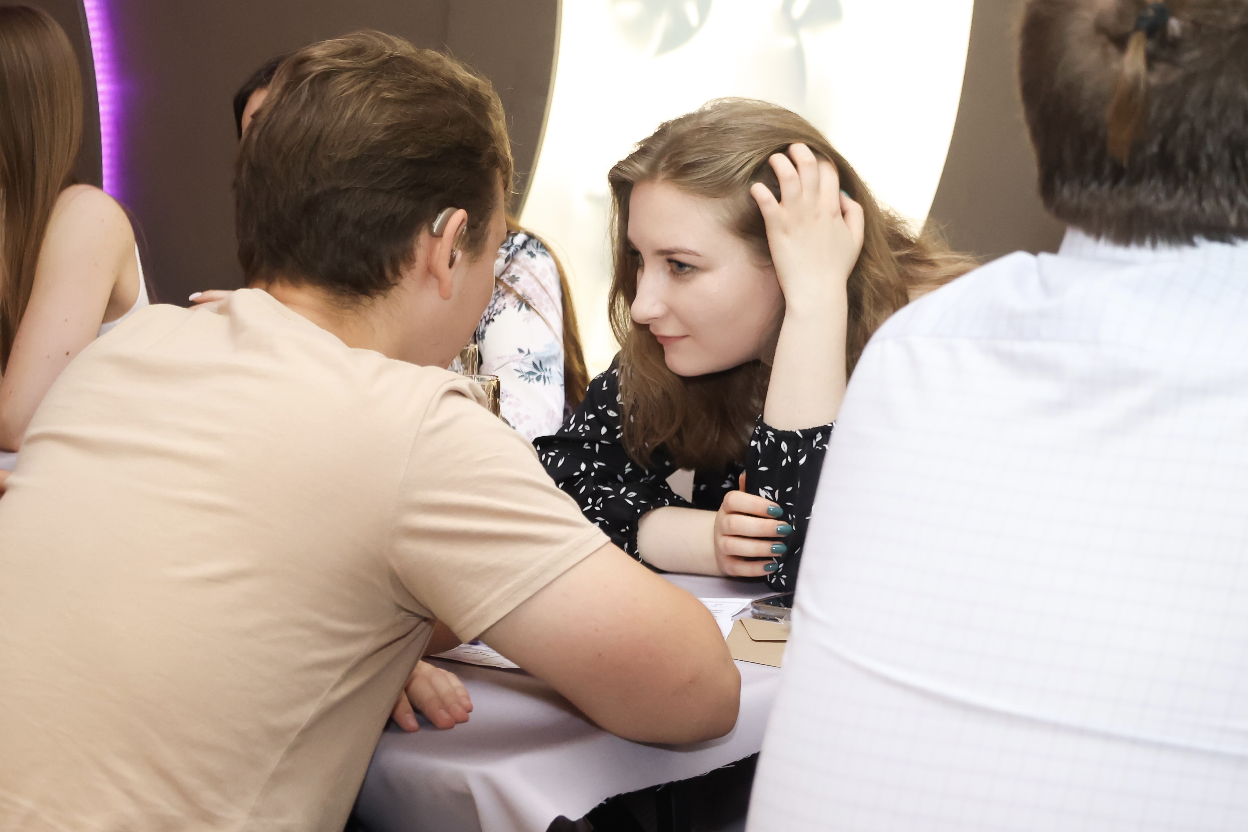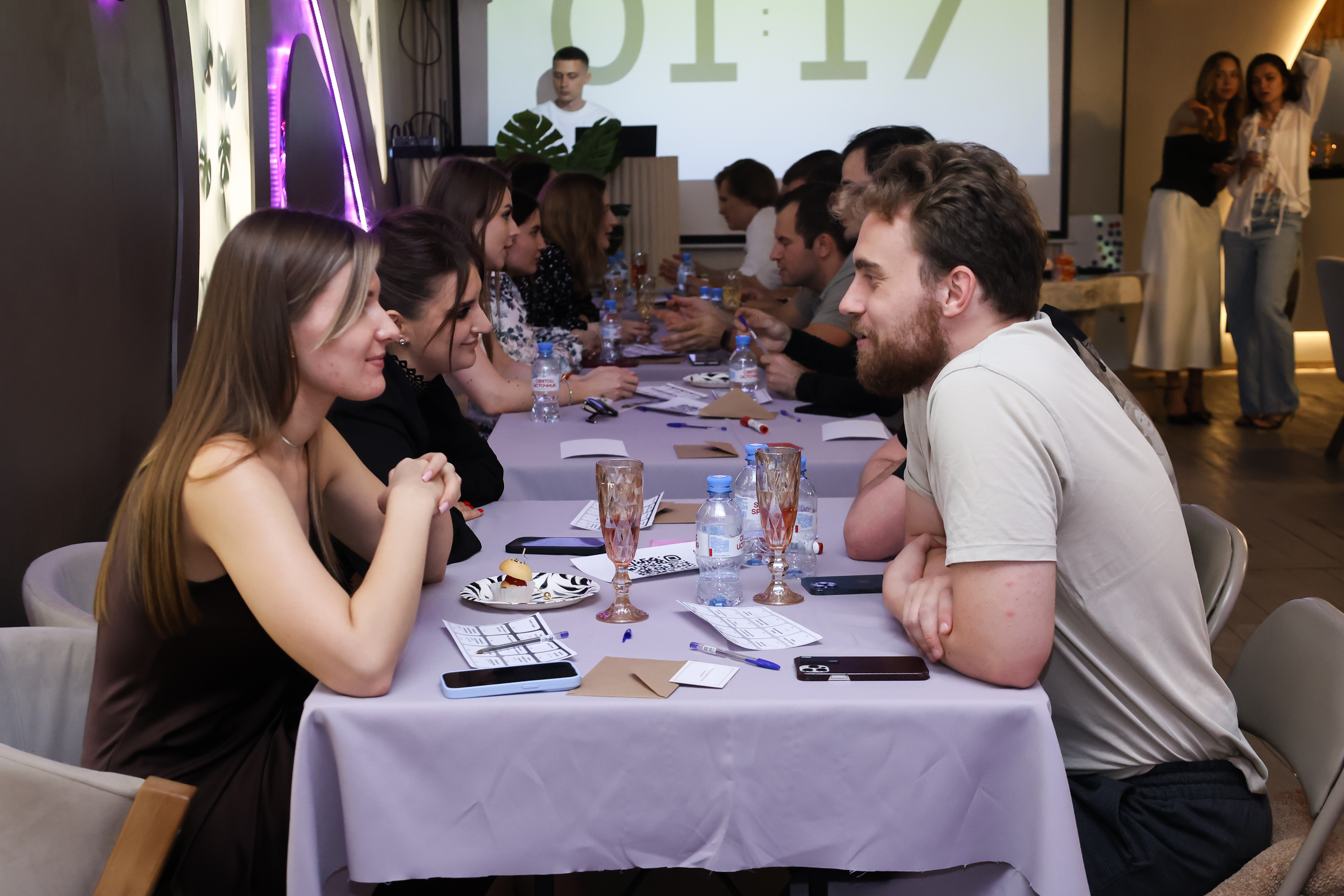 Ура! Начинается дейтинг - каждое знакомство длится 3 минуты. Пары сменяются по команде ведущего.